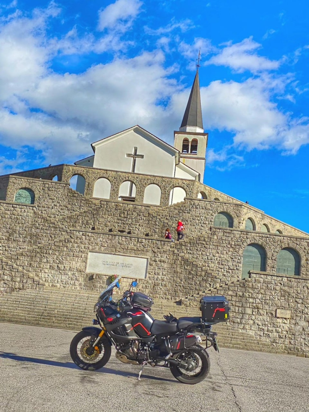 The ossuary was designed by sculptor Giannino Castiglioni and architect Giovanni Greppi, and was erected next to the church of St. Anthony in Gradič above Kobarid in 1938. The ossuary was erected in memory of the 7,014 Italian soldiers who fell in World War I in the areas around Kobarid, Bovec, Tolmin and Rombon.