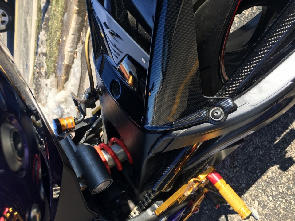 Full Akrapovic evo exhaust. PSR levers and reservoir with the hot body rear sets and a few carbon fiber goodies thrown in!