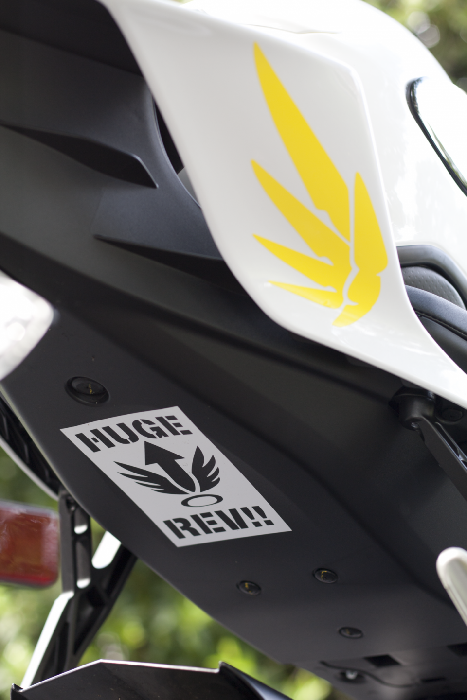 Only "mods" so far are front axle sliders, rear swing arm sliders, bar ends, and the few vinyl decals I created for her.