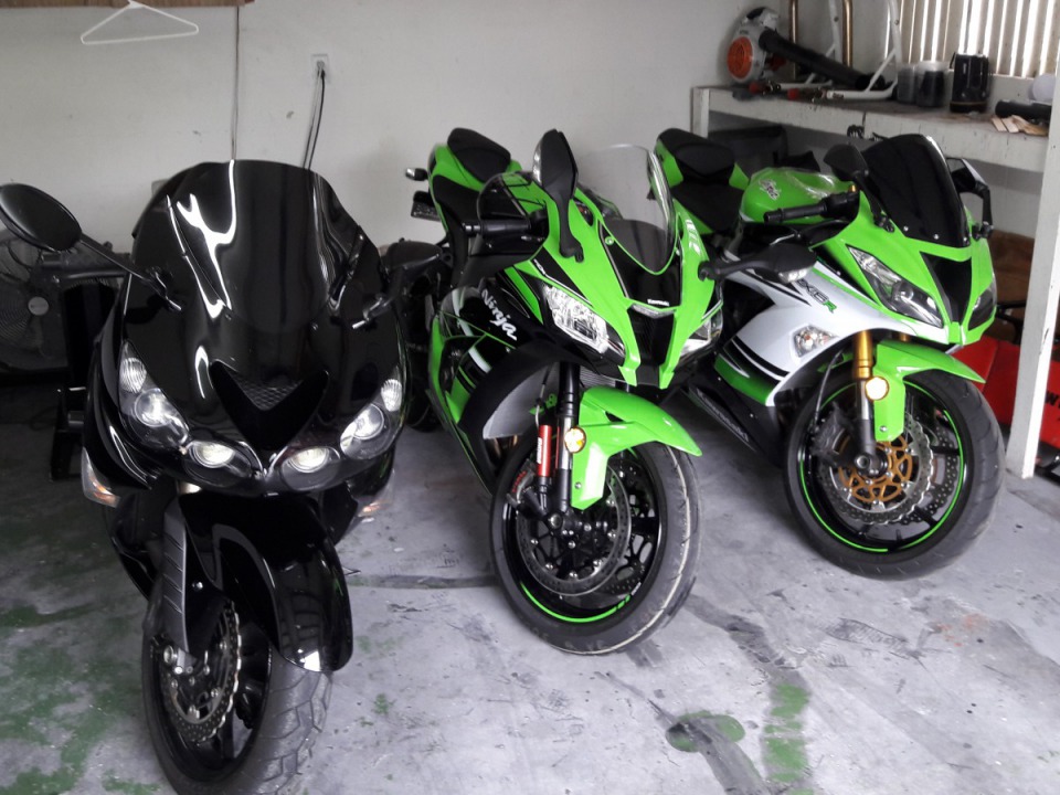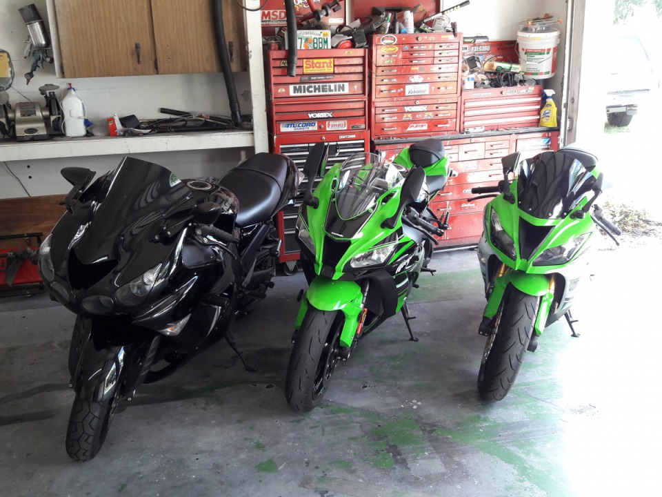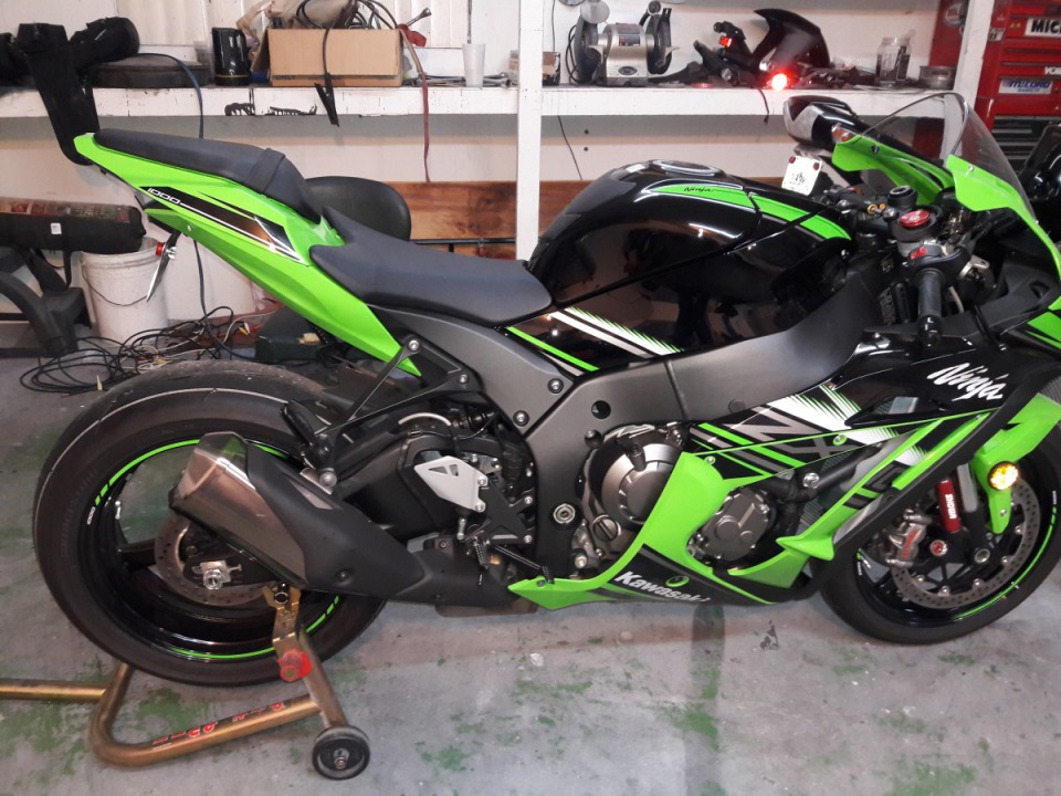 My 2016 ZX10 KRT waiting on my alien head to Brock's pipe to come in also have a 2011 ZX14 for the Brock Street megaphone Power Commander V with map also have my fiance's 2015 ZX6 636
