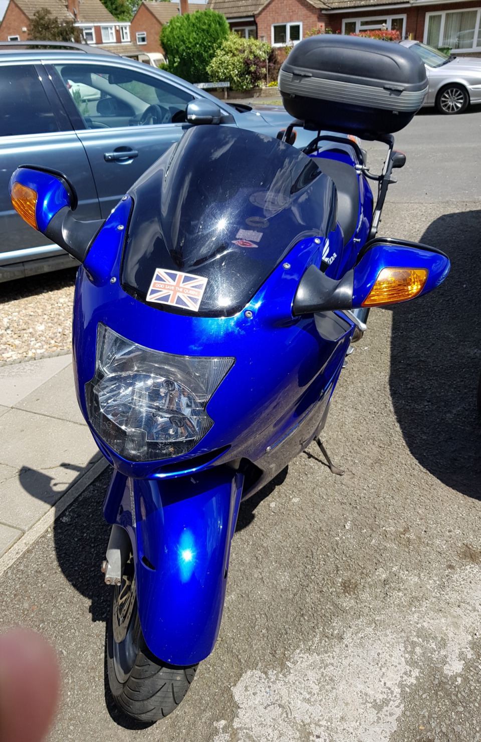 Blue, full luggage and fairly stock.