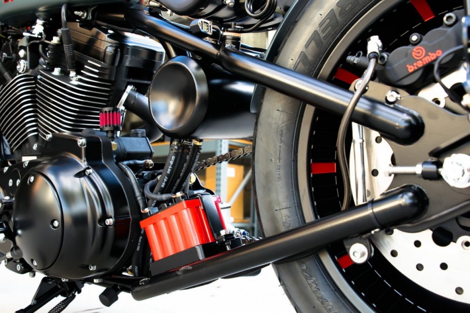 Our goal here was to keep it clean, sanitary and simple. The 1200cc motor is mildly souped up and sounds absolutely wicked through our handmade exhaust.