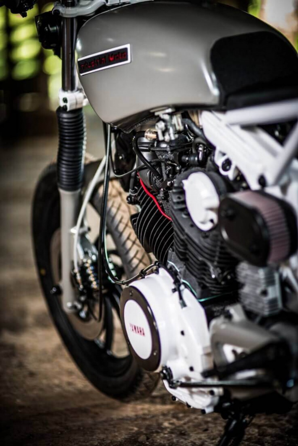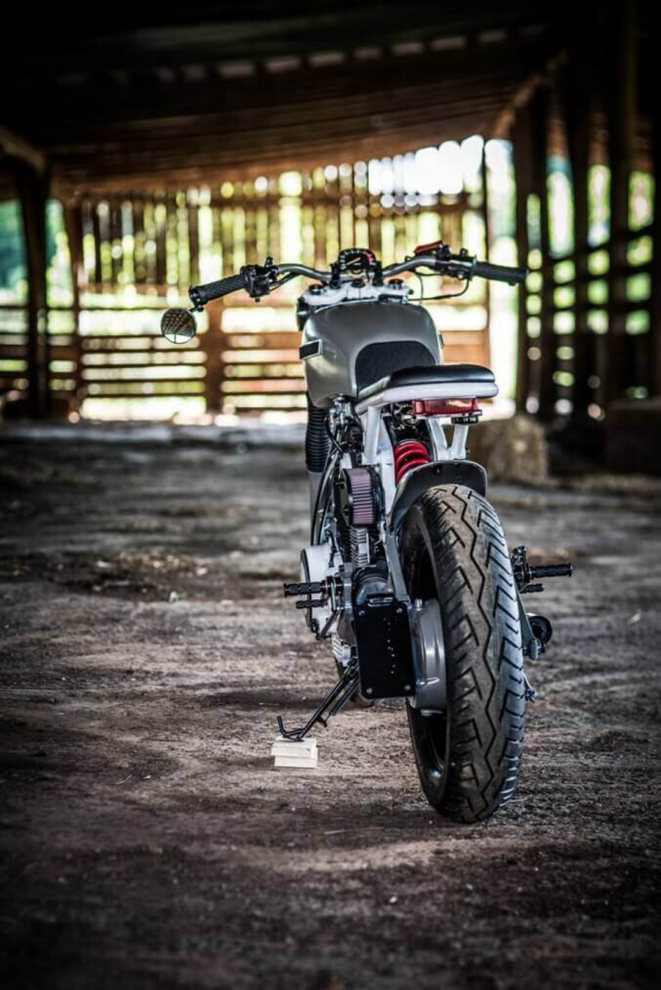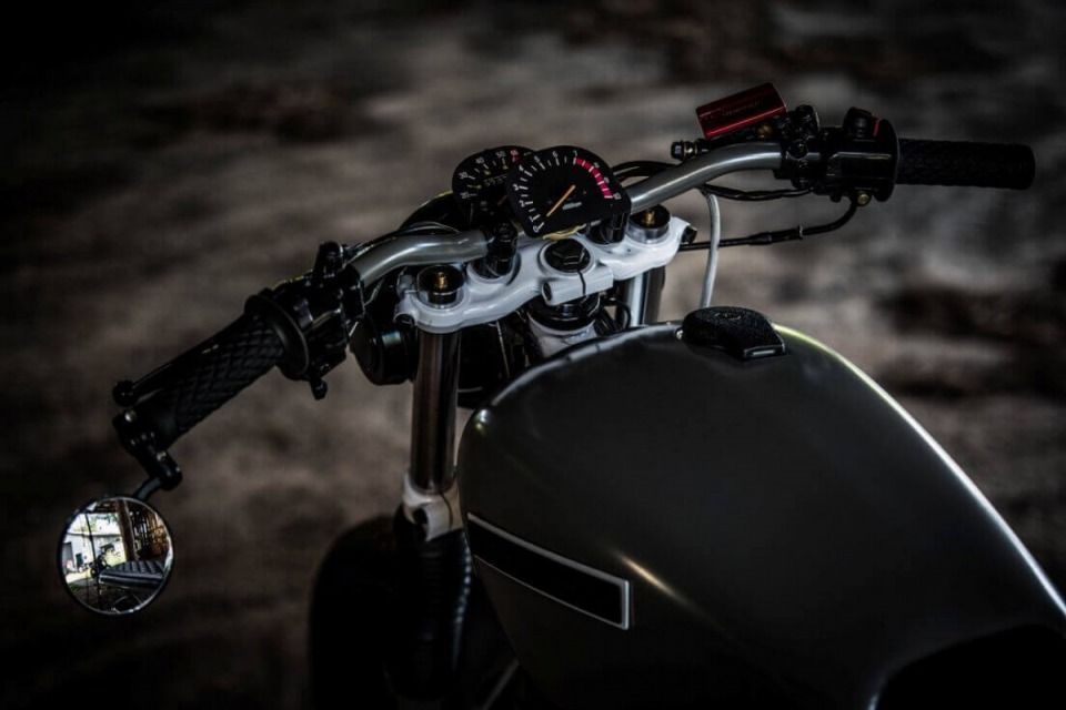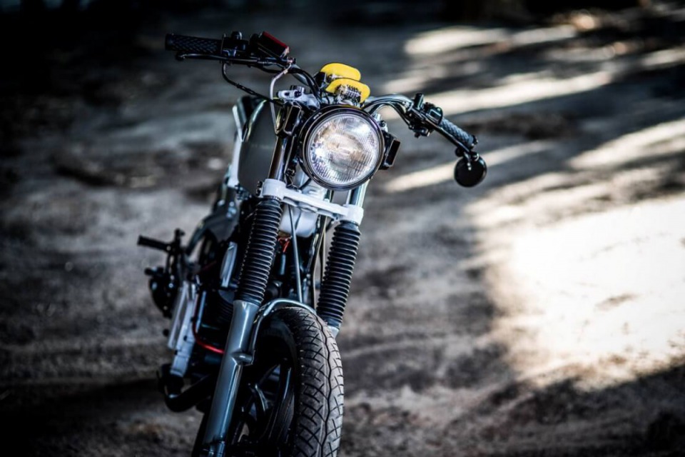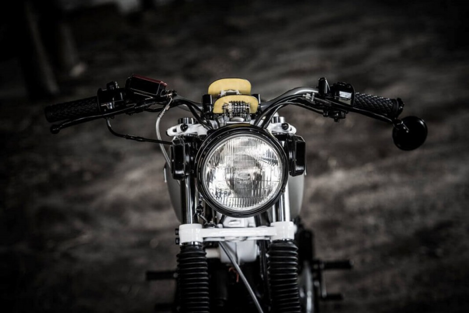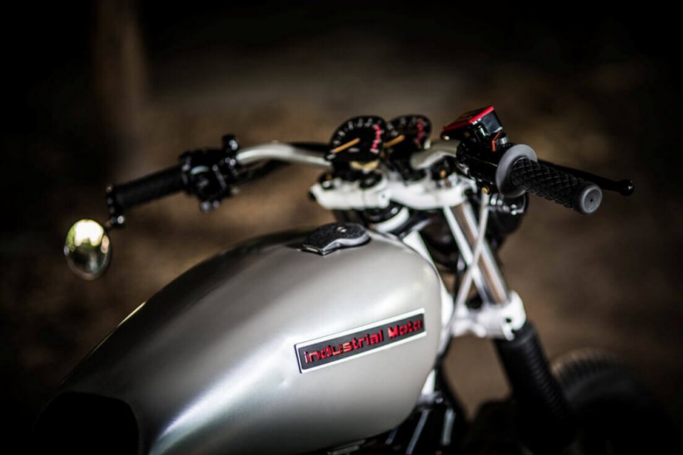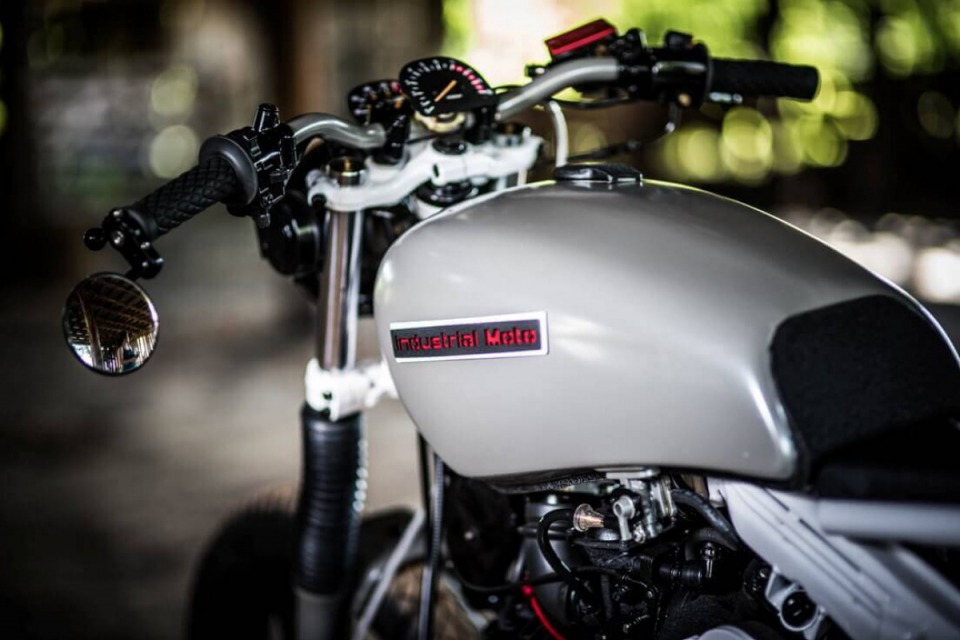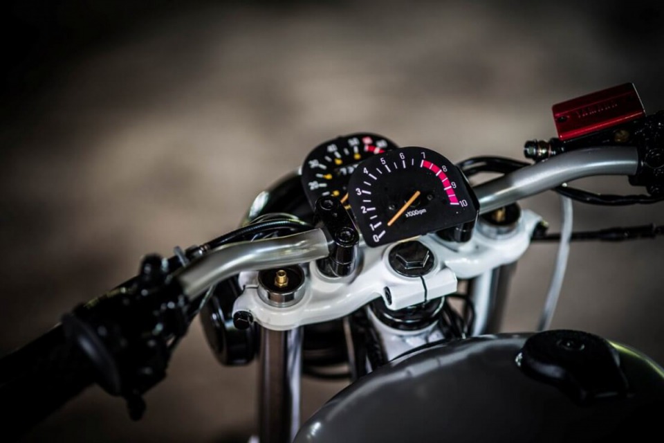 Bike was completely re-built and re-designed with the theme of trying to use as many existing parts in a unique custom way. For example the headlight, taillight, gauges,