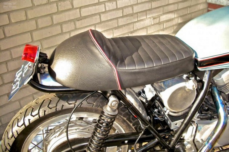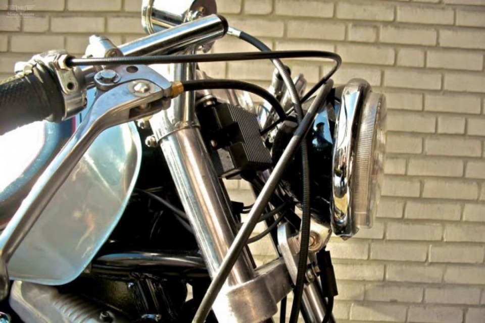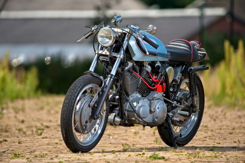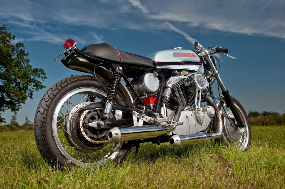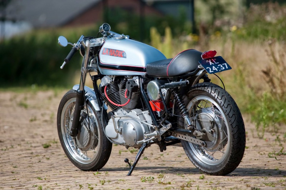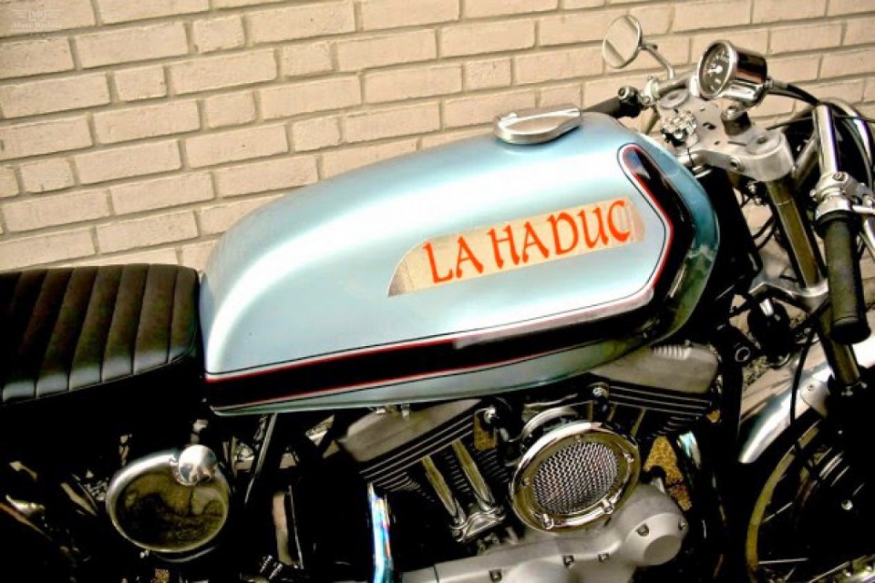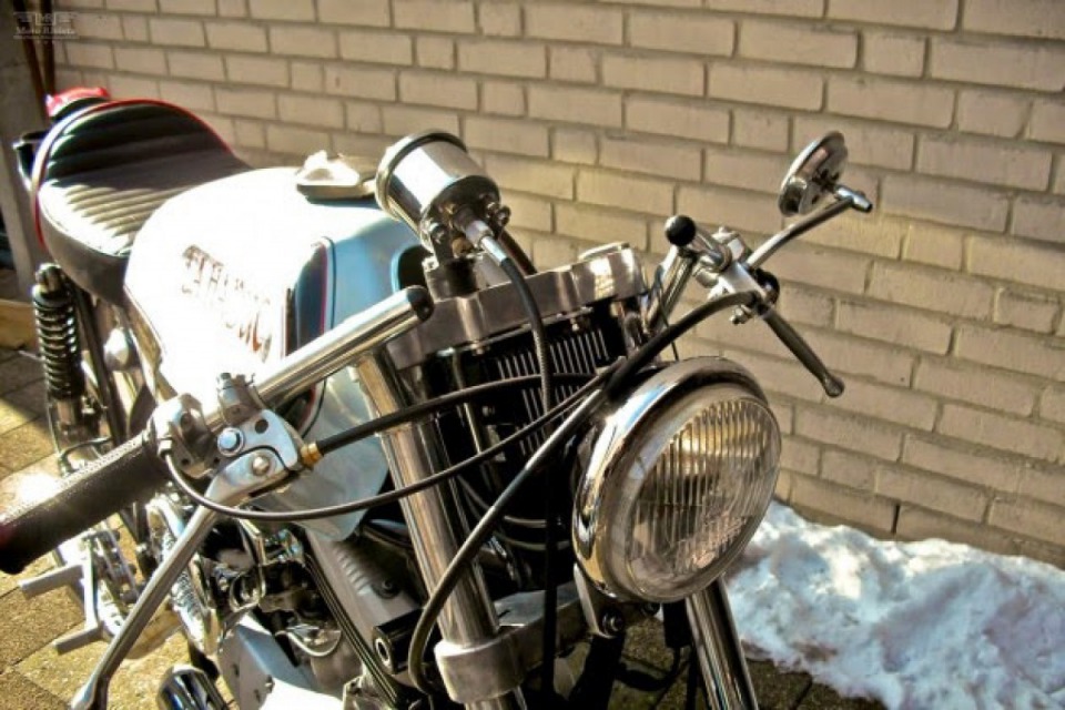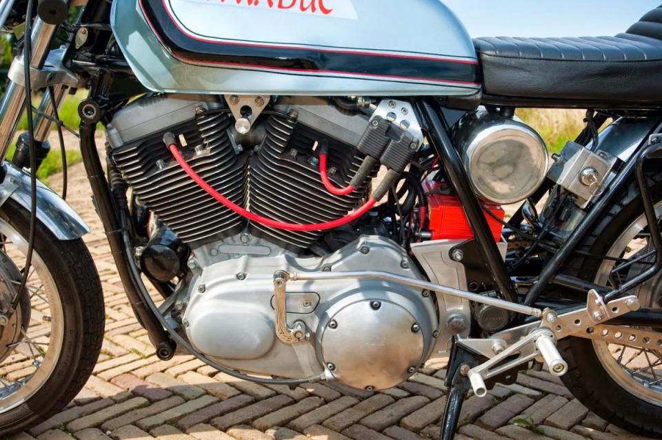 1975 Ducati 860 GT frame, the engine was taken from 2004 Harley XL 1200R. The wheels belong to the Laverda 750 SF,1977 Ducati 500SD gas tank.
