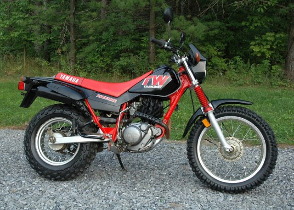 An unsung hero of a bike, a friendly 'puppy dog.' I bought it because my brother had gotten a BW200, to ride in the winter. They weren't available anymore, so I got the T-Dub. It worked great on the singletrack snowmobile trails, thru the woods; but @ the meadows, the sledders spread out, so I usually had to push, under power. I probably as in the best winter shape, ever in those years. Riding at night was actually safer, because we could see the approaching sleds by the glow of their headlight, over the crest of hills, etc. We were the only 2 bikes in a sea of sleds, at the local watering hole....I'd ride enduros with it, simply to get more trailtime. It was fun to come into a check, with the checkers goin' 'whoa! it's the guy w/ the TW!' :D The biggest liability, of course, is the lack of ground clearance. I had a robust skid plate fabricated, and used folding-tipped shift and brake levers. I moved the shifter up a spline; had to lift my foot sometimes to shift. Brake pedal was not so fortunate: in an enduro in PA, the course went along a ridge, all broken quartzite, w/ birch trees and blueberry bushes. I was also riding observed trials at the time, so I approached it w/ that mindset- yet I STILL needed to use the vice-grips to bend the brake lever straight, 6-8 times over a 10 mile stretch. :D