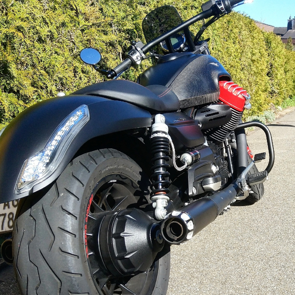 Carbon. Mistral mufflers, Mistral v-twin boost, j.w. speaker LED.
