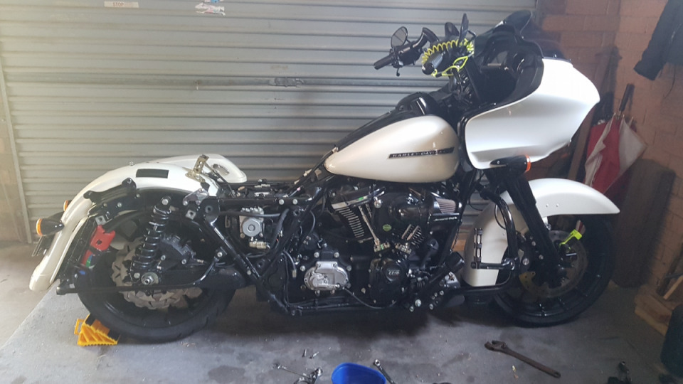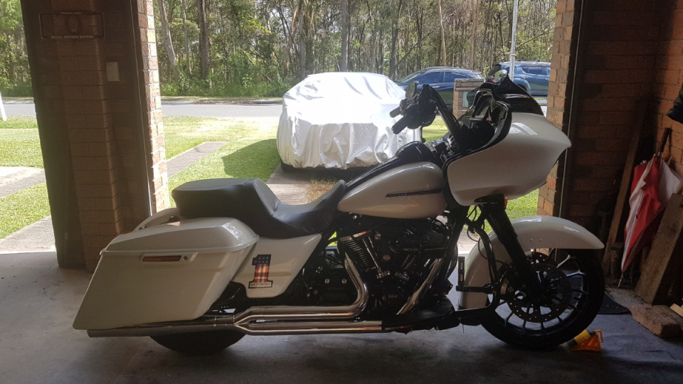2018 harley road glide speciel stage 4 ,fueling cam ,pump,cam plate,engine breathers ,throttle body breathers , sump breathers, All to a catch can. Colour is Bonneville salt pearl. KSTspearhead handle bars ,