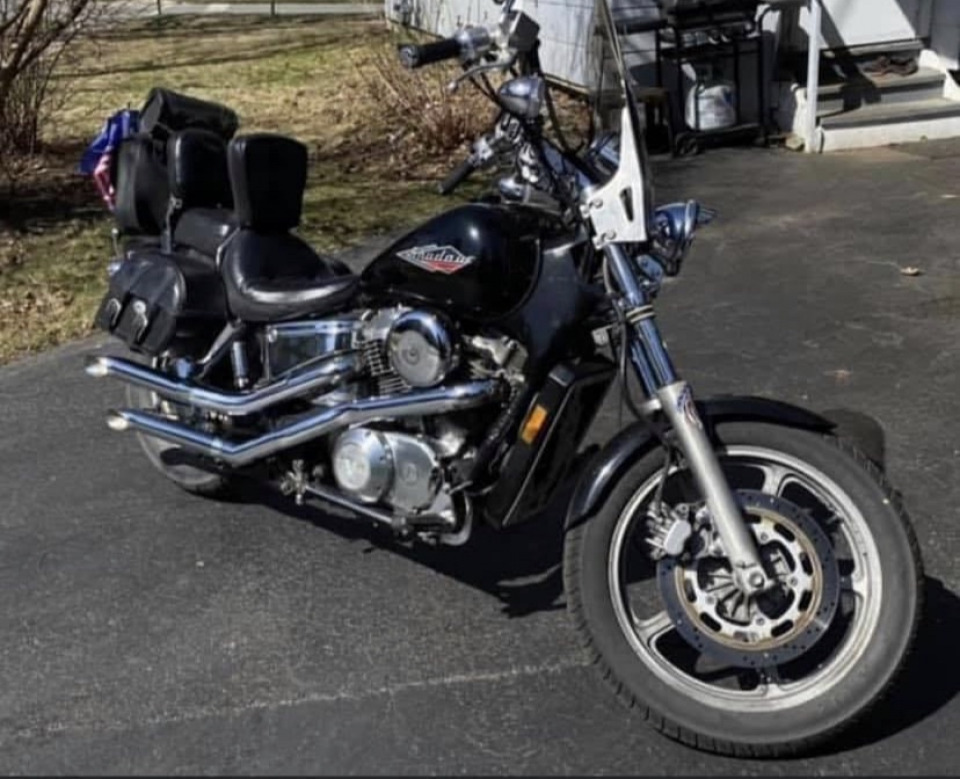 1996 VT1100C, new pipes, new saddle bags, new tires, LED lights and fork lights. Love this bike! 28,000 miles on it.