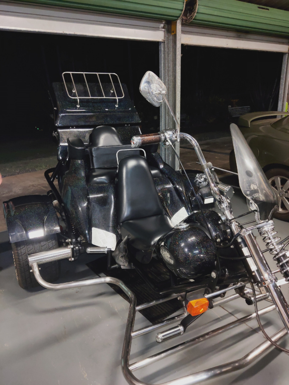2009 OZ Trike, 1916cc engine, black with holographic flake paint 2 seater with top box.