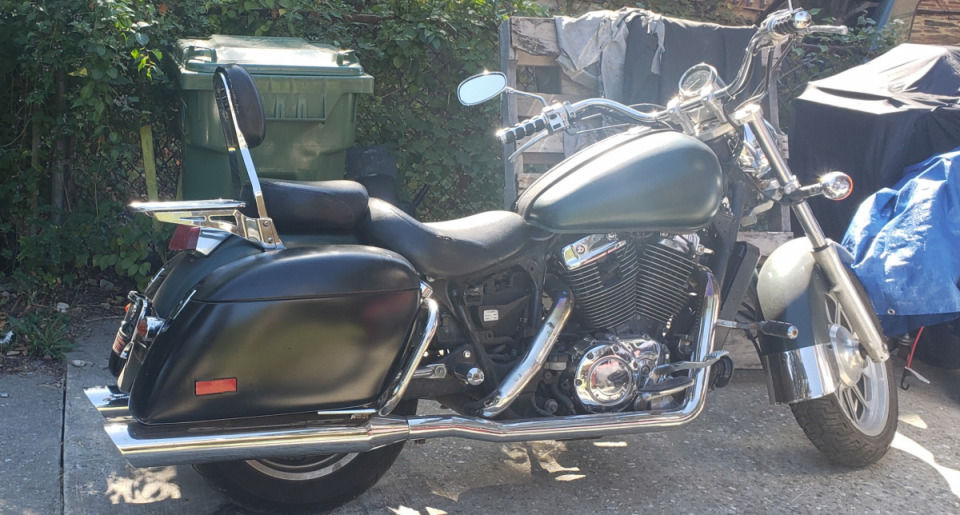 I wanted a bagger and my SydePyce slid right up in the yard. He was sexi to start...but after a few rides i heard a clank in the motor so I had to do a few things before the motor blew. The Shadow American Classic Edition is a easy bike to work on...With help from my bro...we did a weekend swap of the motor, added a new wind screen, lights, and radio...He roared back to life like a champ. Pipes were a crossover custom job...loud and proud....Next up is to get my custom paint job....This bike is more adaptable and easier to maintain than the Harley Baggers