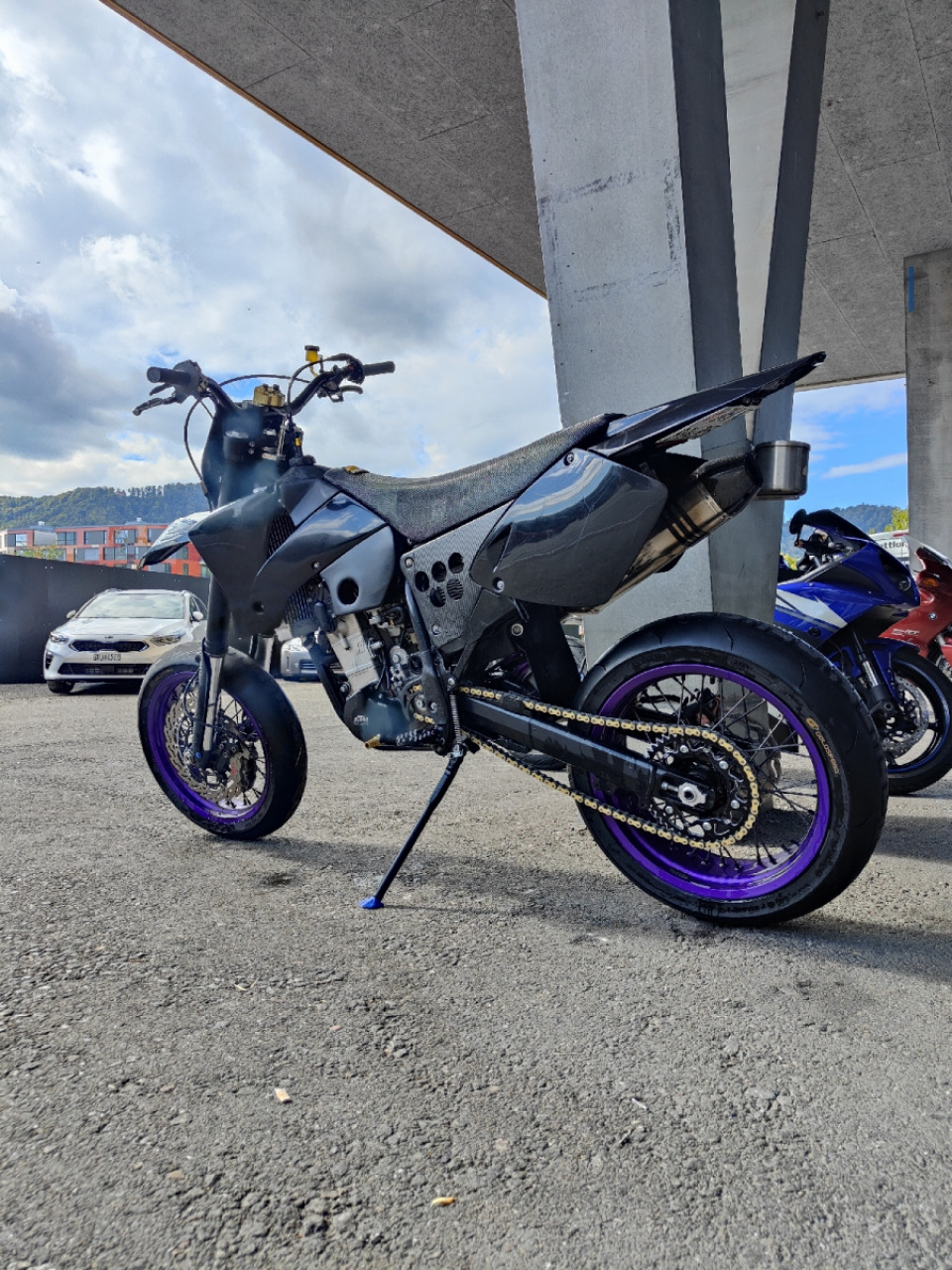 102mm Frauenschuh bigbore kit, 78mm Stroker crankshaft, bigger carb, open airfilter, hotcams camshaft, akrapovic titanium fullsystem, custom powdercoated Rims, Öhlins steeringdamper, custom speedo and watertemprature gauge