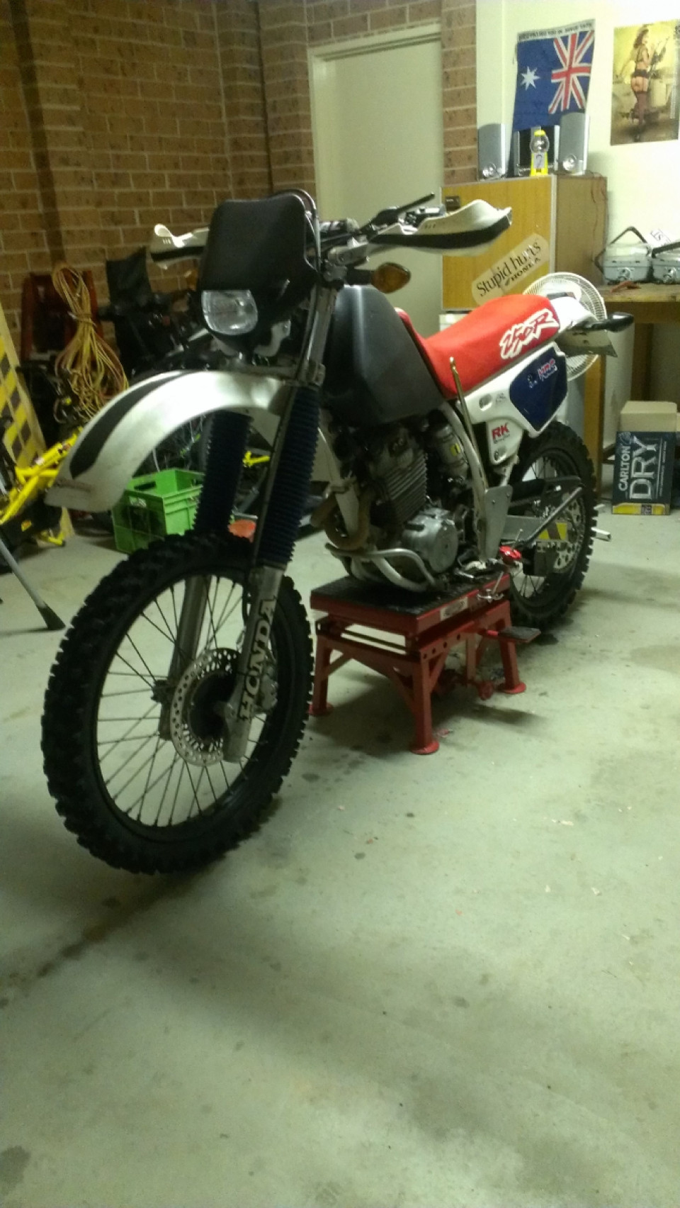 95 Honda Xr250r with a 280 kit, replaced as much as I could front to back...super reliable bike, plenty fast enough for fire trails or poking around the paddocks, even capable of liting a wheel lol
