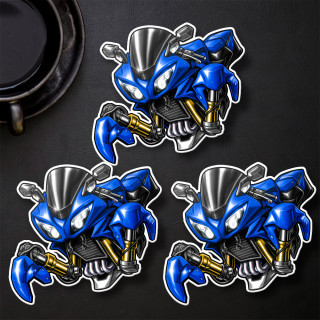 This one sports the colors red, white, and blue on the fuel tank, but also things like the bike maker’s name in big letters, stars all over, a golden horseshoe, and even an image of the rider jumping a canyon with a bridge in the background.