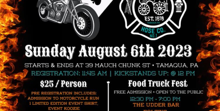 Please join us for our 22nd annual motorcycle run & newly added food truck fest to benefit the American Hose Co. #1 of Tamaqua PA