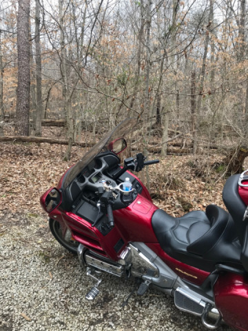 March 7. Day 309. Wonderful day for a ride. Out to Cadiz, then north, then west and was lost and wound up in Dawson springs, ky. Got home and added something to the bike...put a helmet on Knievel....