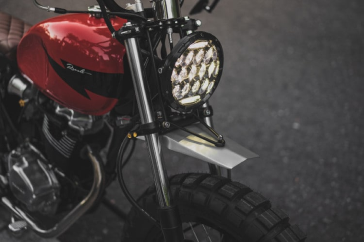 In the process on that we basically did everything ground-up with refurbishing old parts to fitting in new, and modern components like a Lucky 13 LED headlight, mini LED turn lights and a stop & signal LED bar strip at the rear.
